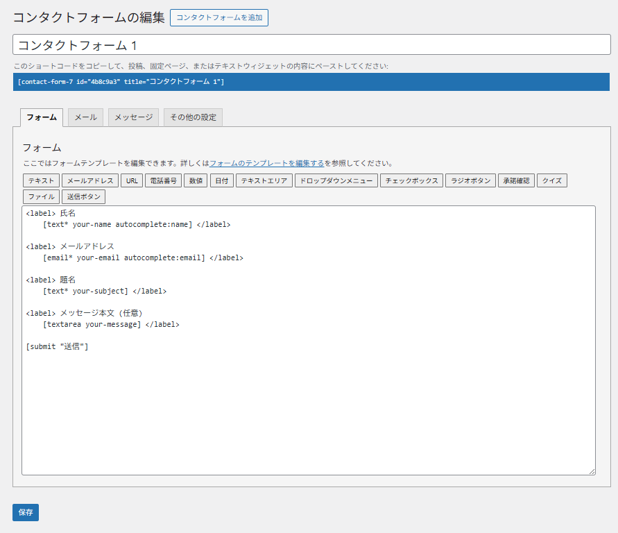そうすると、コンタクトフォーム追加というページに切り替わります。