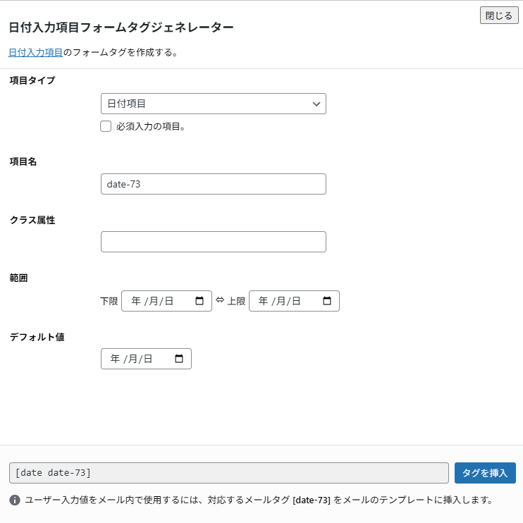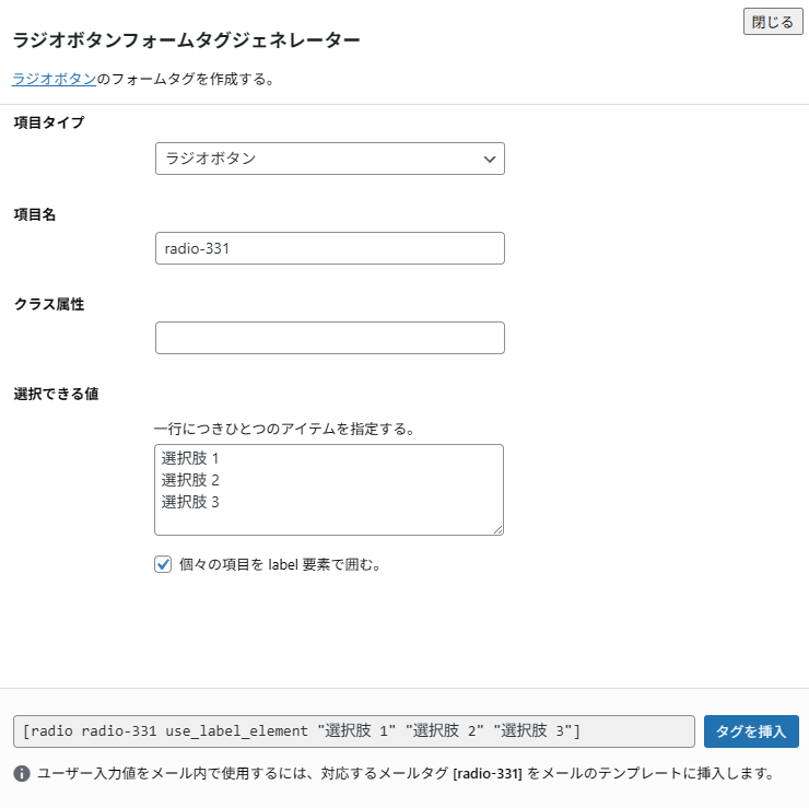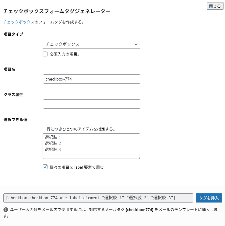 このように、フォーム項目名とメールタグは完全に連動しています。