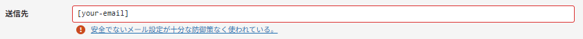 これは Contact Form 7 固有の警告で、送信元(From)がユーザーのメールアドレスになっていないか